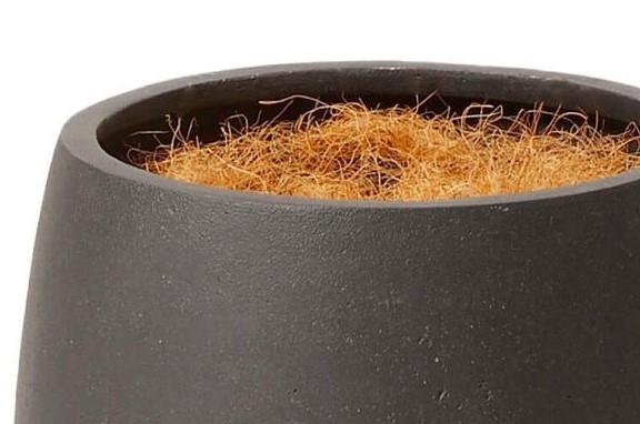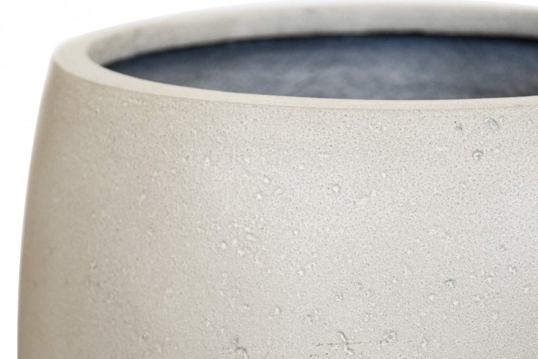 ぽこんとした卵のようなフォルムが可愛いグレーのエッグポットに合わせました。柔らかな風合いが魅力で、見た目はセメント素材の鉢カバーですが、ファイバーストーンという軽くて扱いやすい割れない素材を使用しています。