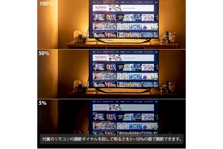 テレビの背面や棚板奥に置けばおしゃれな間接照明に。