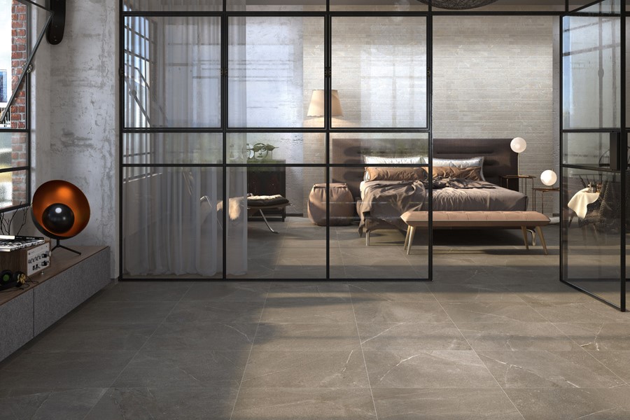 石の繊細な模様と落ち着いた深みのある色合いが魅力のマディソン。シックで高級感あるフロアスペースを演出します。
