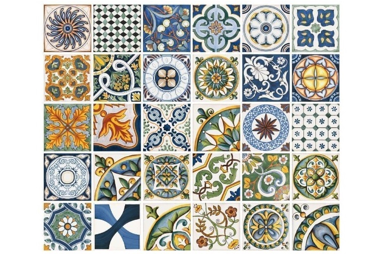 地中海のイメージをマジョリカ風タイルに。伝統的なマジョリカの陶器質の素材感を、耐久性の高い磁器質で実現しました。明るいベースカラーに、南イタリアの街並みや花々から着想を得た古典柄が美しいコレクションです。