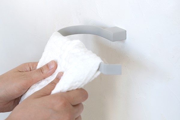 Curve=曲線的なフォルムがモダンなパーツアイテムです。設置後はビスが見えない構造なので、スッキリとした印象を与えます。「タオルバー Curve アイアン S」は、アイアン製タオルハンガー。フェイスタオルを二つ折りにして掛けられるサイズ感です。お手洗い・洗面所など、限られたスペースでもコンパクトにお使い頂けます。